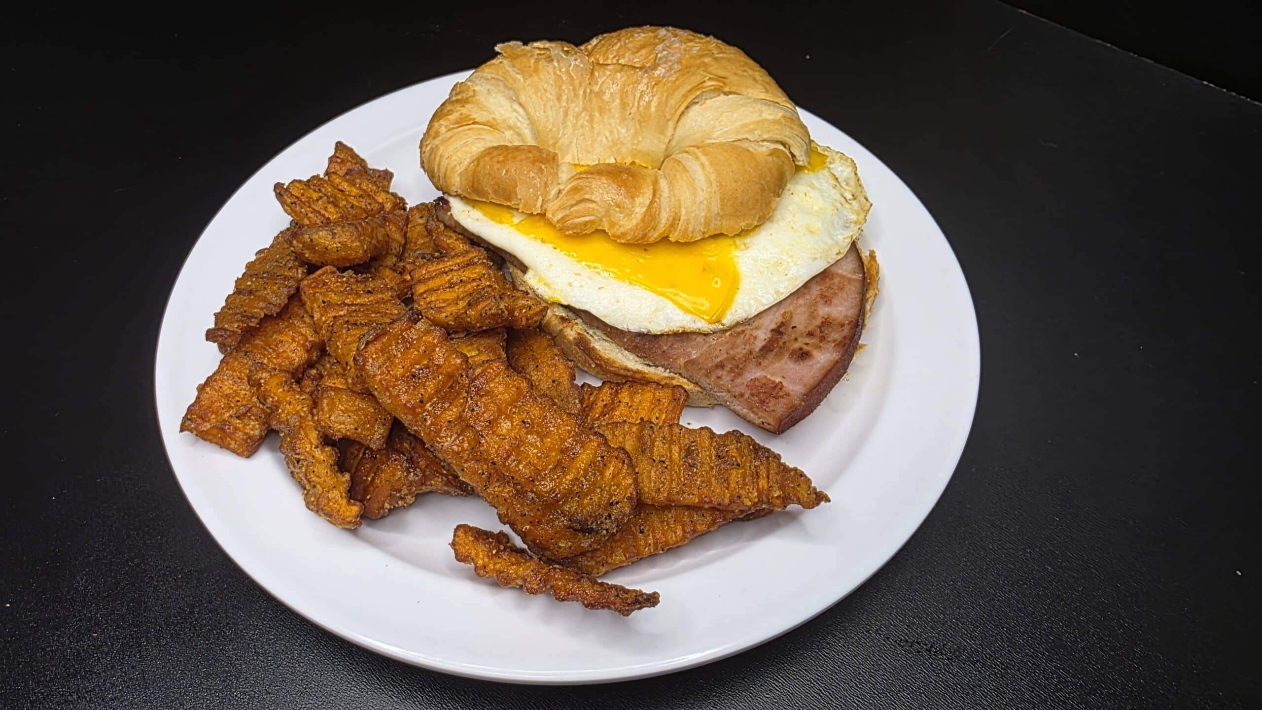The Big Oak’s Breakfast Sandwich is a timeless favorite, crafted to satisfy even the heartiest of morning appetites. Served on a soft and flaky croissant, this sandwich begins with a perfectly fried egg that brings richness and flavor to every bite. A layer of creamy, melted American cheese adds a touch of indulgence, while your choice of crispy bacon or savory sausage delivers a burst of smoky, meaty goodness.